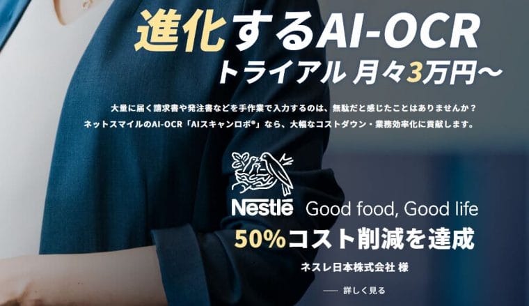 | AIスキャンロボ | トライアル:月額30,000円(税要確認)~ | 活字に強い | 日本語、英語、中国語(繁体字・簡体字)、韓国語、タイ語 | 〇 |