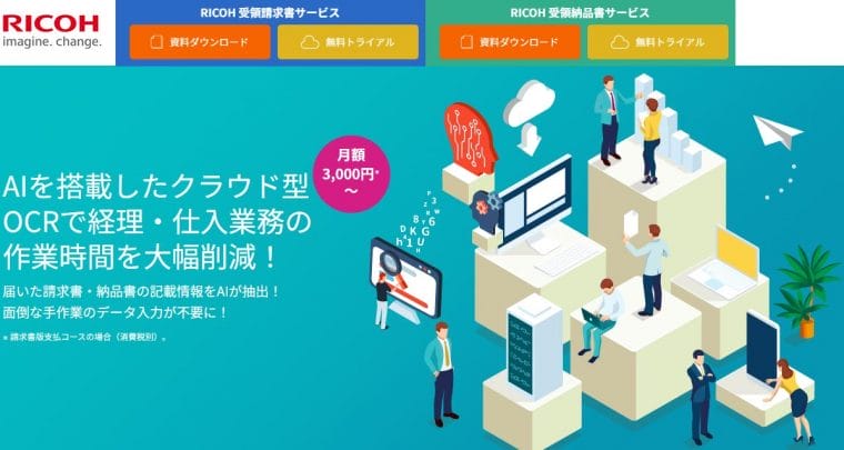 | RICOH 受領請求書サービス/ RICOH 受領納品書サービス | 初期費用:0円~ 月額費用:3,300円(税込)~ | 活字に強い | 要問合せ | 〇 |