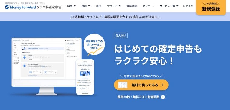 他のクラウド会計ソフトにおいても、1ヶ月から2ヶ月ほど無料トライアルを利用できる場合が多いでしょう。