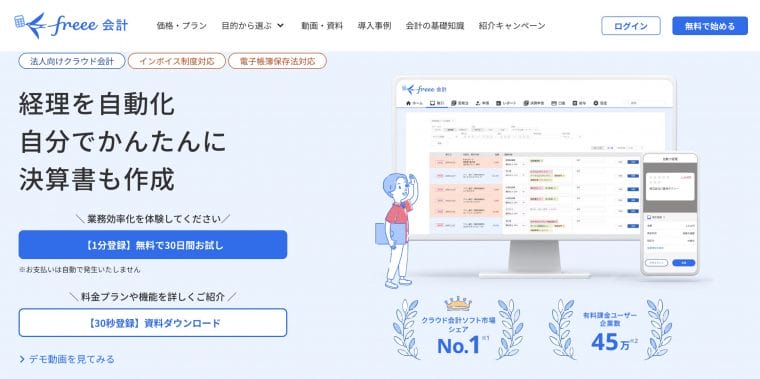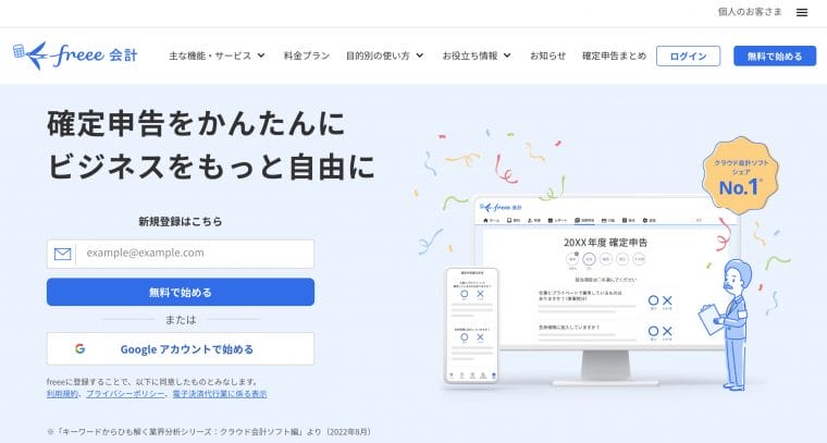 『freee会計』(個人事業主向け)は、フリー株式会社が提供するクラウド会計ソフトです。
