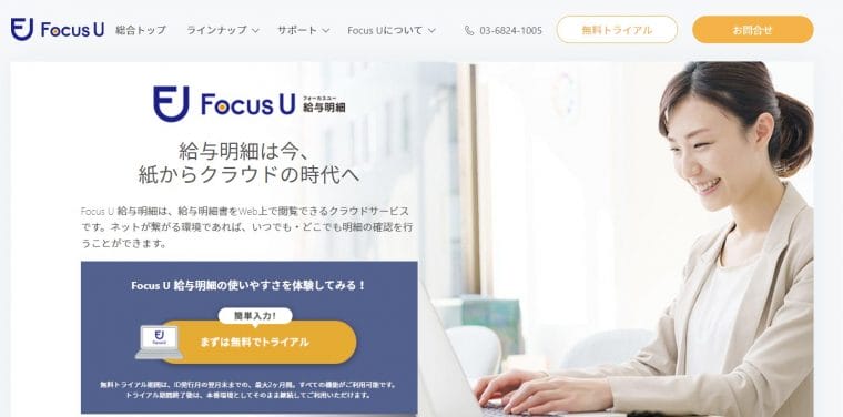 『Focus U 給与明細』は、給与計算ソフトとの連携がスムーズに行える給与明細システム。クラウド型サービスのため、インターネットが繋がればどこでも給与明細が確認できます。