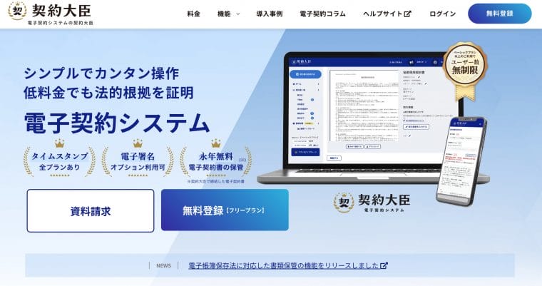 電子契約に必要なのは基本料金のみで、契約書の送信料や管理料は無料。送信件数の制限もないので、契約業務が多くお悩みの場合におすすめです。