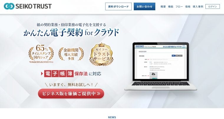 人気の理由は、弁護士監修による安心感と充実のセキュリティ。弁護士監修のもとで開発され、電子署名法に準拠しているほか、金融機関や官公庁でも利用されるほど安全性が優れています。