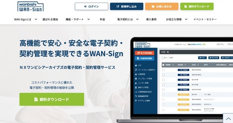 『WAN-Sign』は、株式会社NXワンビシアーカイブズが提供する電子契約サービスです。