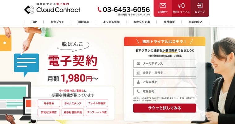 基本料金は9,680円(税込)、電子契約書の送信料は1件あたり110円(税込)とリーズナブルで、導入しやすいのが魅力のひとつ。