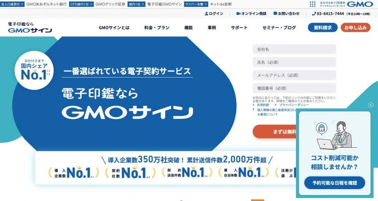 『GMOサイン』は、GMOグローバルサイン・ホールディングス株式会社が提供する電子契約サービスです。導入企業社数は350万社以上を誇り、業界問わず多くの企業・自治体に導入されています(※)。