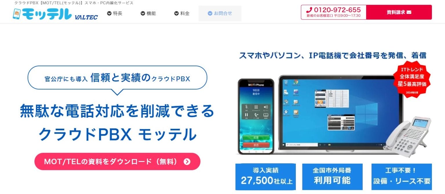 「株式会社バルテック」が提供するクラウド型のビジネスフォンサービスです。