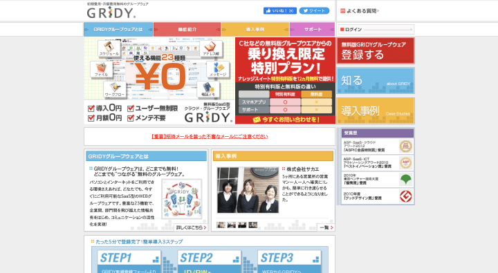 ブルーテック株式会社の『GRIDY(グリッディ)グループウェア』はユーザー数無制限で多彩な機能を使える無料のグループウェアです。