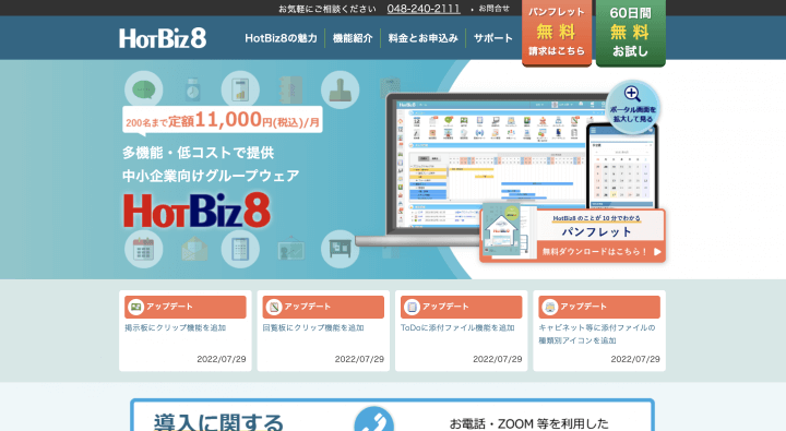 HotBiz89,900円〜(年払いの月額)定額制で従業員数の多い中小企業におすすめ