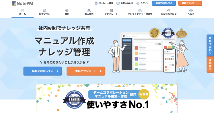 社内で役立つ知識をドキュメント形式で共有でき、クラウド上で管理できます