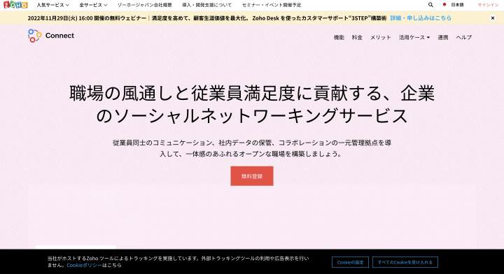 ゾーホージャパン会社の『Zoho Connect(ゾーホーコネクト)』は、リーズナブルに導入できる社内SNS/グループウェアです。社内コミュニケーションの活性化や情報共有の効率化に便利な機能がそろっています。