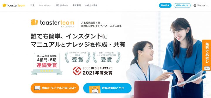 toaster teamは誰でも簡単にマニュアルの作成・共有ができるツールです。