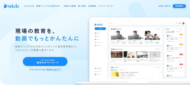 tebikiは動画マニュアルをかんたんに作成できる新人教育システムです。
