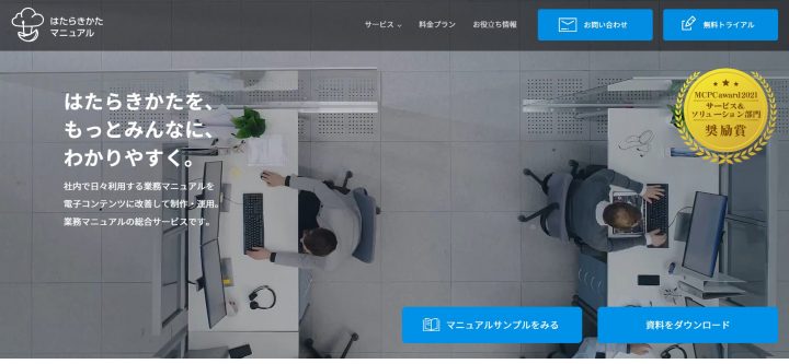 はたらきかたマニュアルは業務マニュアルを電子コンテンツに改善して制作・運用できるサービスです。