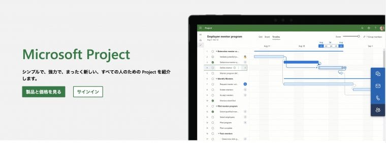 『Microsoft Project(マイクロソフト プロジェクト)』は日本マイクロソフト株式会社が提供している、プロジェクト管理をシンプルかつ強力にサポートするプロジェクト管理ツールです。