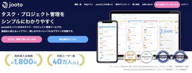 『Jooto(ジョートー)』は株式会社PR TIMESが提供している、カンバン方式を採用したタスク・プロジェクト管理ツールです。