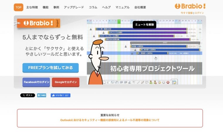 | 主な機能 | タスク管理 ガントチャート 予定実習管理機能 プロジェクト横断管理機能 コミュニケーション機能 外部連携機能 データ共有機能・ファイル管理機能 など |