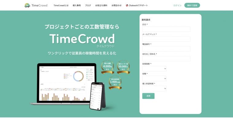 『TimeCrowd(タイムクラウド)』はタイムクラウド株式会社が提供している、ワンクリックで従業員の稼働時間を見える化できるプロジェクト管理ツールです。