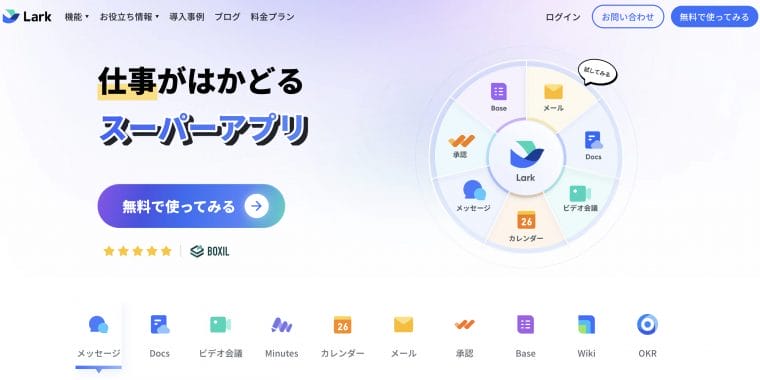 『Lark(ラーク)』はLark Japan株式会社が提供している、プロジェクト管理に必要な機能がオールインワンで搭載されているアプリです。