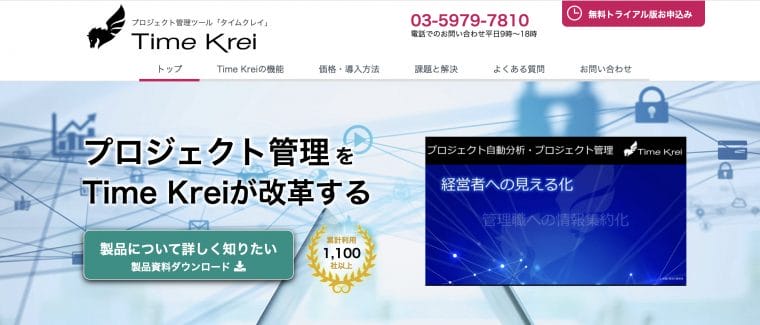 『Time Krei(タイム クレイ)』は株式会社テンダが提供している、プロジェクト管理とグループウェアをオンライン上で一元管理できるプロジェクト管理ツールです。