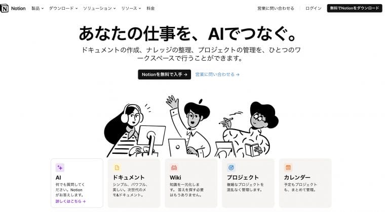 『Notion(ノーション)』はプロジェクト管理のみならず、営業や人事などさまざまなシーンで活用できるワークスペースツールです。