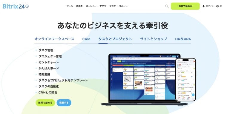 | 主な機能 | タスク管理 プロジェクト管理 データ保存 作業時間記録 作業予定計画 カンバンボード ガントチャート 取引先管理 タグ管理 など |