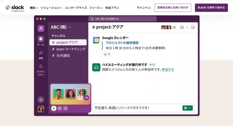 『Slack(スラック)』は、株式会社セールスフォース・ジャパンが提供するビジネスチャットツールです。