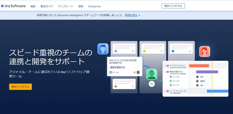 『Jira Software』は、無料プランが用意されているタスク管理ツールです。