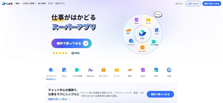 | 主要機能 | チャットアプリ、外部連携、タスク管理、プロジェクト管理、トラッキング |