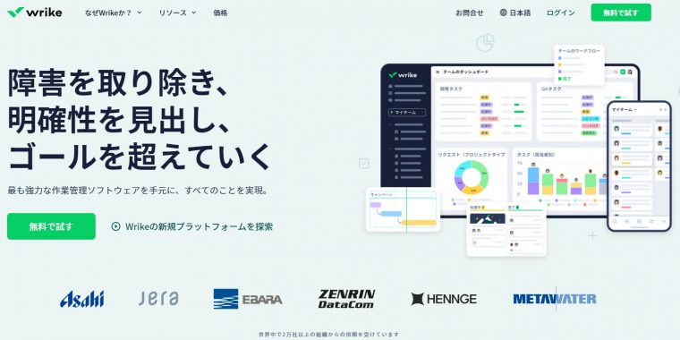 計画、管理、レポート、自動化など、プロジェクトのあらゆる工程を管理できる機能が充実しています。