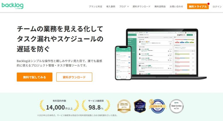 | Backlog | 月額2,970円(税込)~ | 〇 | タスク管理、プロジェクト管理、コラボレーション、バージョン管理 |