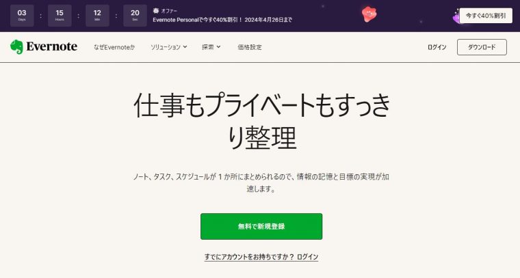 『Evernote』は、無料プランが用意されているタスク管理ツールです。