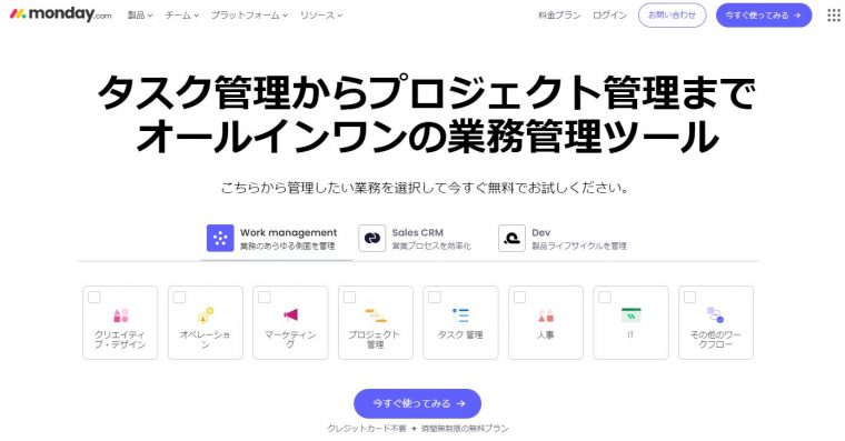 『monday work management(monday.com)』は、無料プランが用意されているタスク管理ツールです。