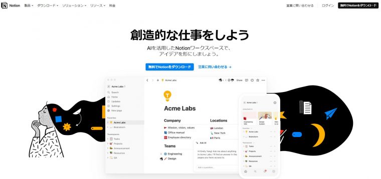 ・有料プラン:月額8ドル(税要確認)/ユーザー~ ※年払いの場合 | 要問合せ | AI、ドキュメント、チームWiki、プロジェクト管理、カレンダー |