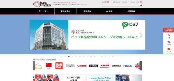トランスコスモス株式会社はトランスコスモスのDX、コールセンター、デジタルマーケティングなどの業務を行っています。