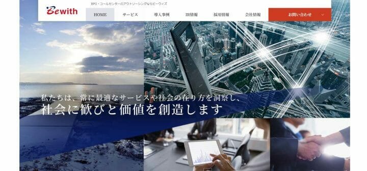 | ビーウィズ株式会社 | ・AI Communication ・デジタルBPO ・多言語映像通訳 | ・オペレーション業務 ・事務処理 ・通訳 ・コンサルティング ・コールセンター | ・サイボウズ株式会社 ・東京電力パワーグリッド株式会社 ・東京電力エナジーパートナー株式会社 など | 要問い合わせ |