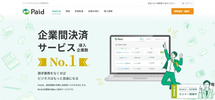 | Paid | 0円 | 0円 | 請求金額の~2.9% | 銀行振込コンビニ払い 口座振替 | × |