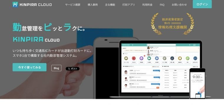 『シュキーン』は、株式会社インフィニットループが提供するおすすめの勤怠管理アプリです。iPhone・Androidのスマホアプリもリリースされており、モバイル打刻のほかPCやICカードを使って打刻できます。