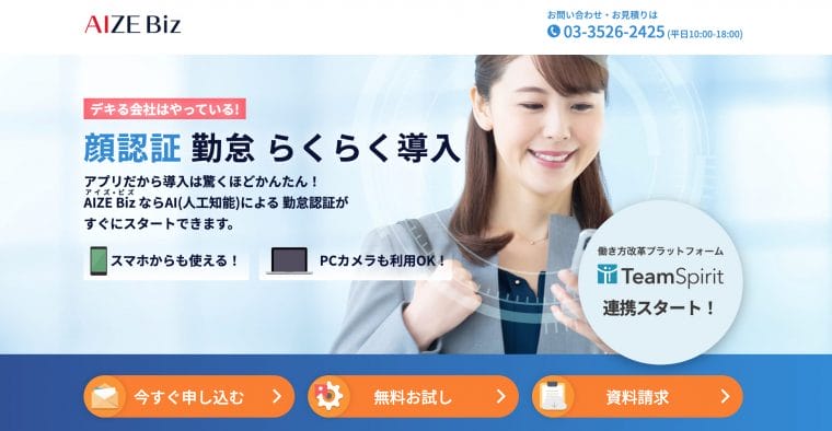 『チムスピ勤怠』は、株式会社チームスピリットが提供するおすすめの勤怠管理アプリです。クラウドシステムとして提供されていますが、カスタマイズにも柔軟に対応。企業の細かなニーズに応えています。