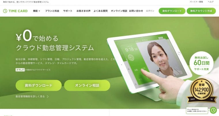 初期費用は無料、月額料金は330円(税込)とリーズナブルでありながら、出退勤の打刻やデータの自動集計、休暇管理、残業管理、給与システム連携など豊富な機能を搭載しています。