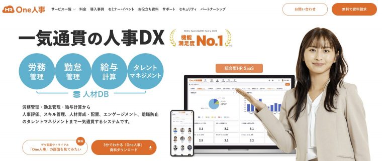 | ・2,500社以上の導入実績を誇る人事管理システム(※) ・独自の組織診断サーベイ機能を搭載 ・初期設定から運用支援まで、専任のサポートチームが全面的にバックアップ |