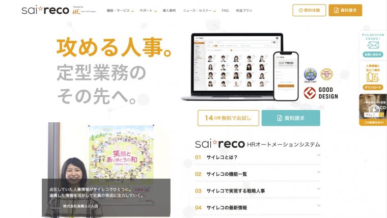 『sai*reco(サイレコ)』は、組織人事コンサルティングファームである株式会社アクティブ アンド カンパニーが運営する人事管理システムです。