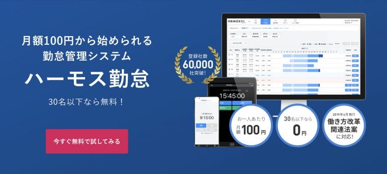 勤怠管理システムについて、導入費用がネックになっている場合は無料で利用できる勤怠管理システムを検討してみてはいかがでしょうか。