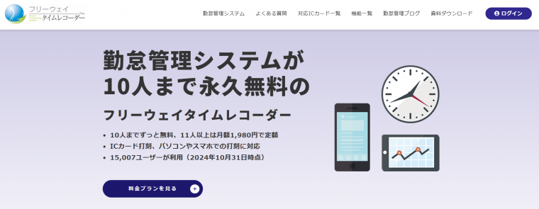 フリーウェイタイムレコーダーは、株式会社フリーウェイジャパンが提供している勤怠管理システムです。