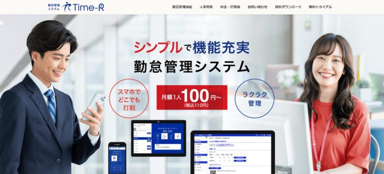 Time-Rは、1人あたり月額100円という低価格で利用できる勤怠管理システムです。