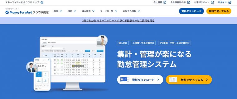 勤怠管理システムの無料版といっても、PCやスマホで出退勤の登録ができる・勤怠記録を自動集計できるなど、便利な機能が標準搭載されているものばかりです。