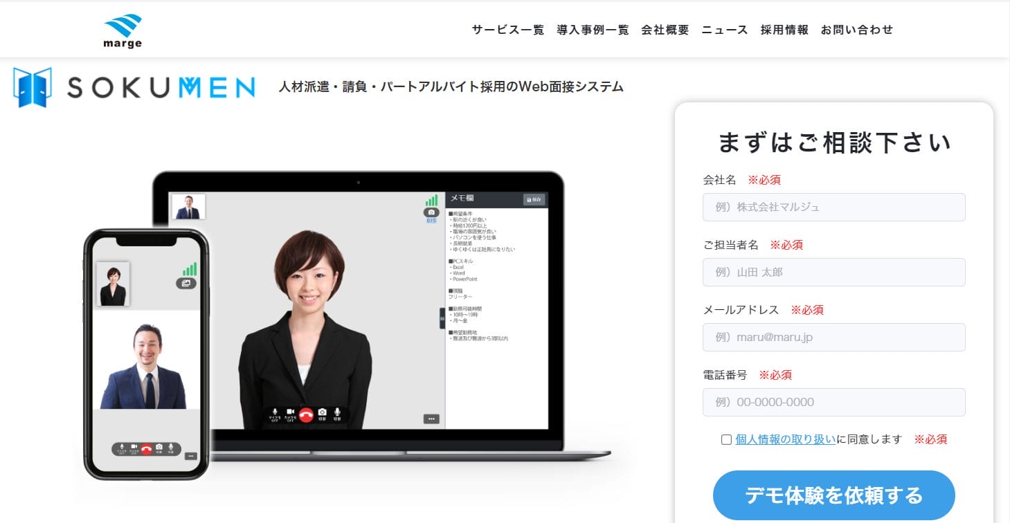 応募者側は必ずパソコンを使用する必要がなく、スマートフォンやタブレットから面接が可能です。