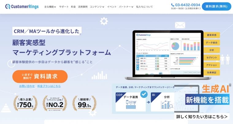 年間契約の場合は1ユーザーあたり月額1,848円〜で利用でき、費用を抑えてCMツールを導入したい場合にぴったり。