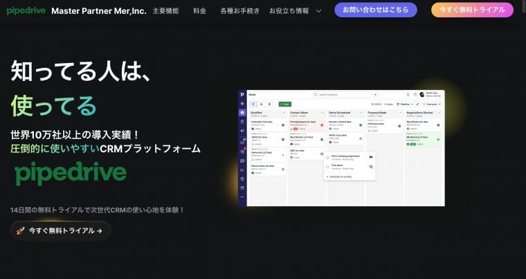 低価格でありながらもリード管理や顧客管理、パイプライン管理、リードスコアリングやスケジュール管理など、便利な機能を利用できます。