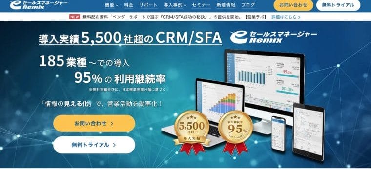 『eセールスマネージャーRemix Cloud』は、ソフトブレーン株式会社が提供するおすすめのCRMツールです。